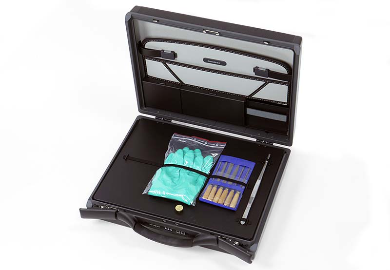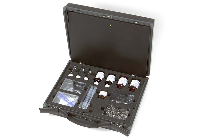El kit de restauración de números de serie está diseñado y confeccionado para la recuperación de números de serie borrados de armas, motores, etc., mediante grabado químico. Además de materiales para la eliminación de pintura y desengrasado de la zona a examinar, se incluyen líquidos y materiales auxiliares para el grabado de acero y aluminio.