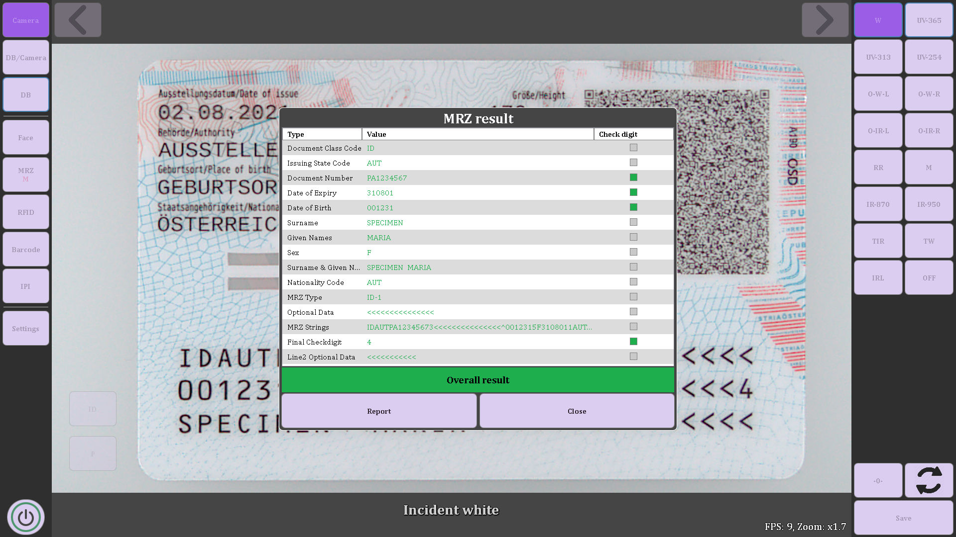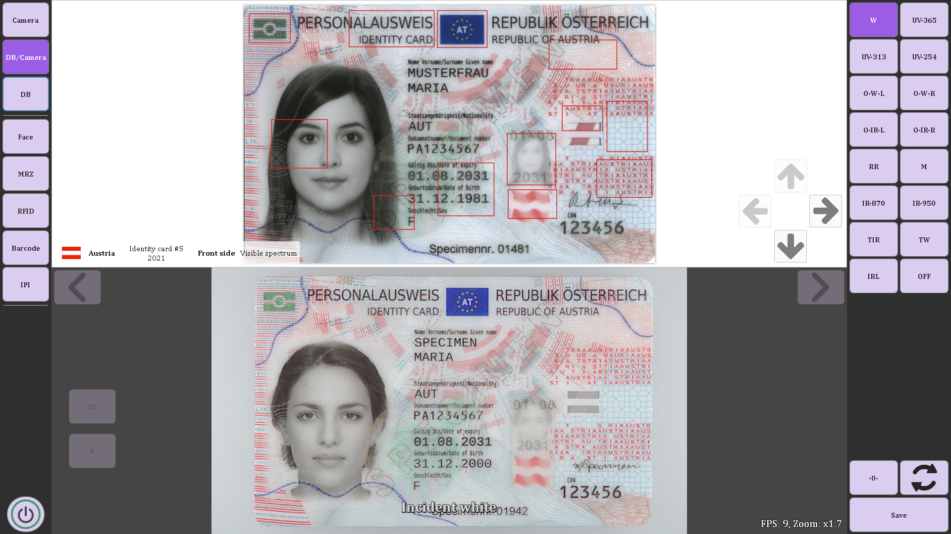 El sistema integrado de información y referencia de Regula localiza con precisión cada elemento de seguridad, comparando el documento examinado con imágines de referencia.
