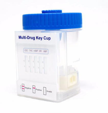 Este vaso analiza sustancias encontradas en la orina de manera rápida y sencilla. Es una prueba rápida para realizar un control a personas y conocer presuntivamente si ha ingerido algún tipo de sustancia ilegal. El vaso dispone de diferentes tiras reactivas que al entrar en contacto con la orina de la muestra revelarán si es positivo o no y a qué sustancia en caso de que se encontrase presencia de ellas.