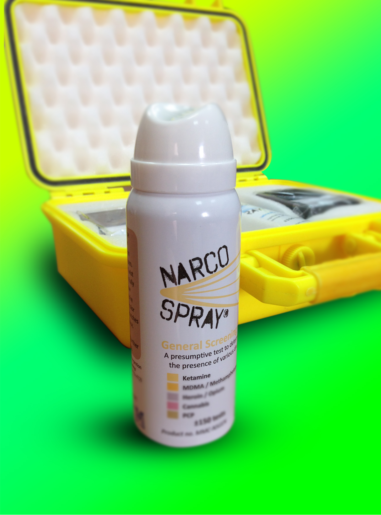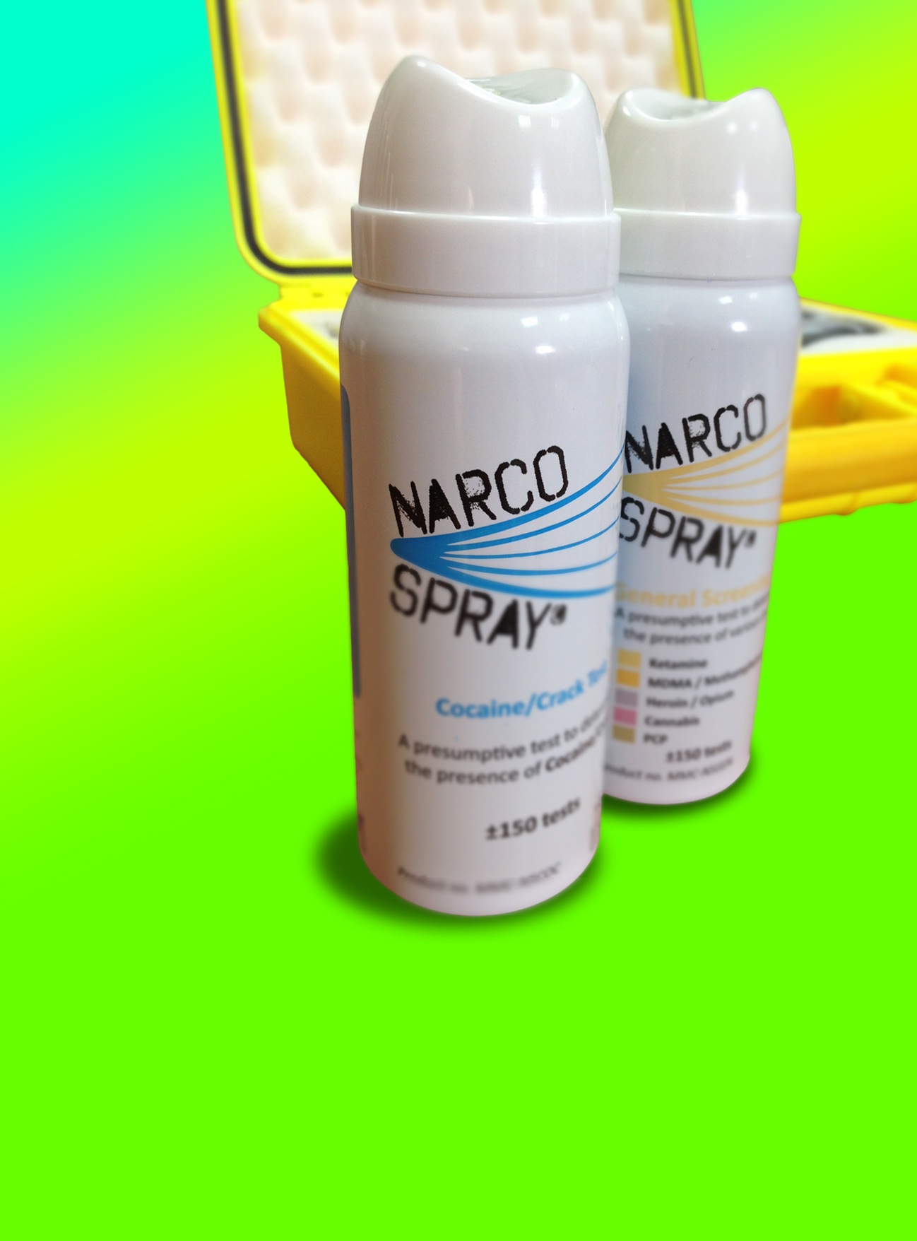 Narco Spray es una prueba presuntiva para determinar la presencia de sustancias como cocaína, crack, metanfetaminas, heroína, cánnabis y derivados. Para una previa clasificación o descarte y posteriormente analizar la sustancia en el laboratorio.
