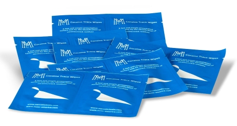Estas prácticas toallitas para identificar cocaína pueden identificar presuntamente la cocaína a partir de trazas de residuos presentes en superficies que han estado en contacto con ella.