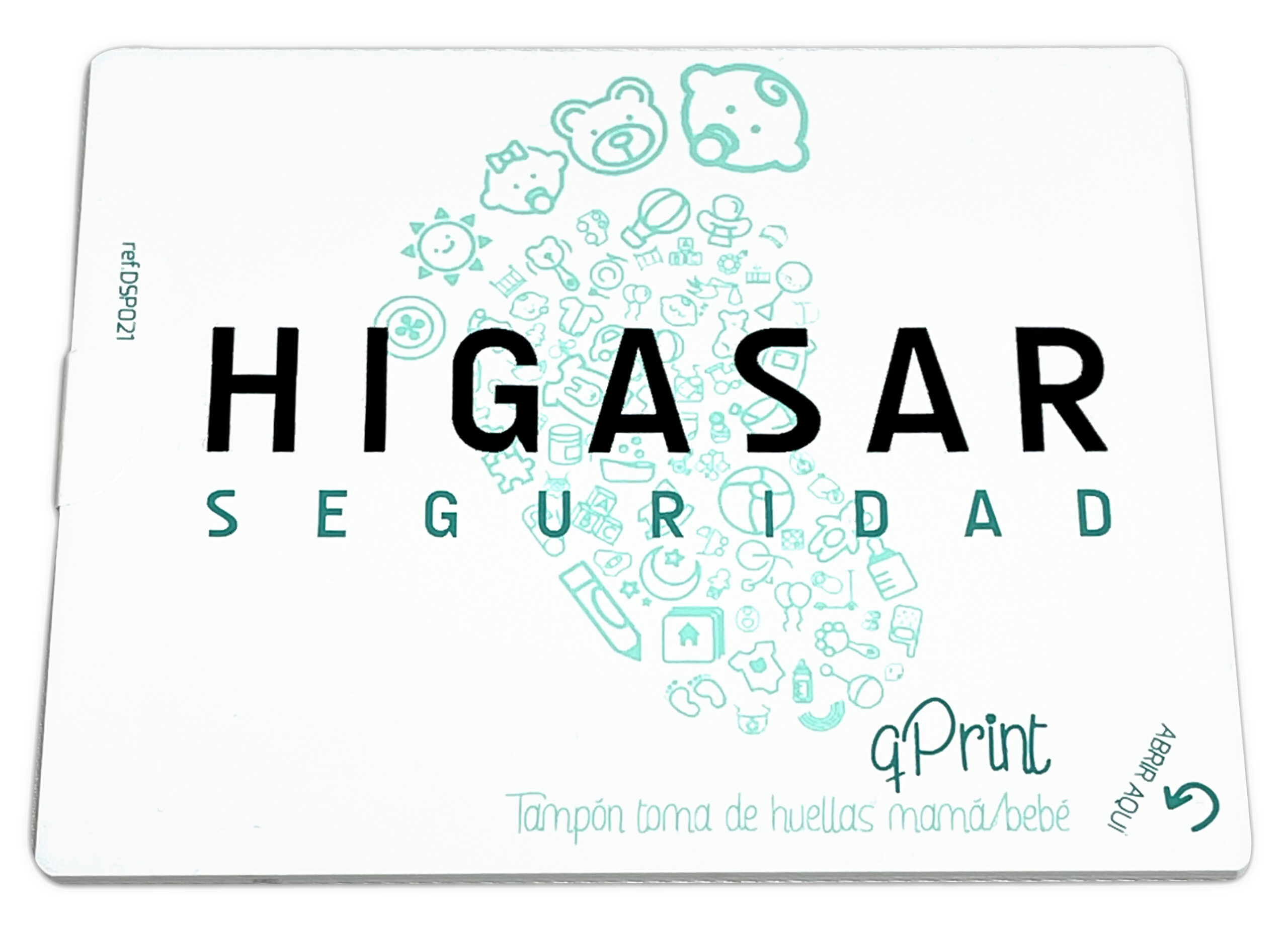 Es un sistema limpio y desechable. Para utilizarlo simplemente abra la tarjeta a la mitad y encontrará nuestra tinta especial para huellas dactilares. Esta tinta esta diseñada específicamente para la toma de huellas, no se apelmaza y realiza impresiones limpias en las que posteriormente se podrán identificar los puntos característicos tanto de la huella del bebé como de la madre.