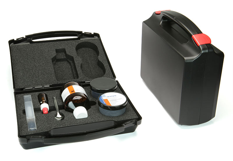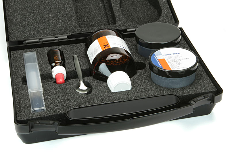 Para desarrollar huellas, el polvo debe mezclarse con una solución que contenga un detergente como Dactyflo y agua. La suspensión, que parece pintura, se aplica a la superficie con un cepillo suave.