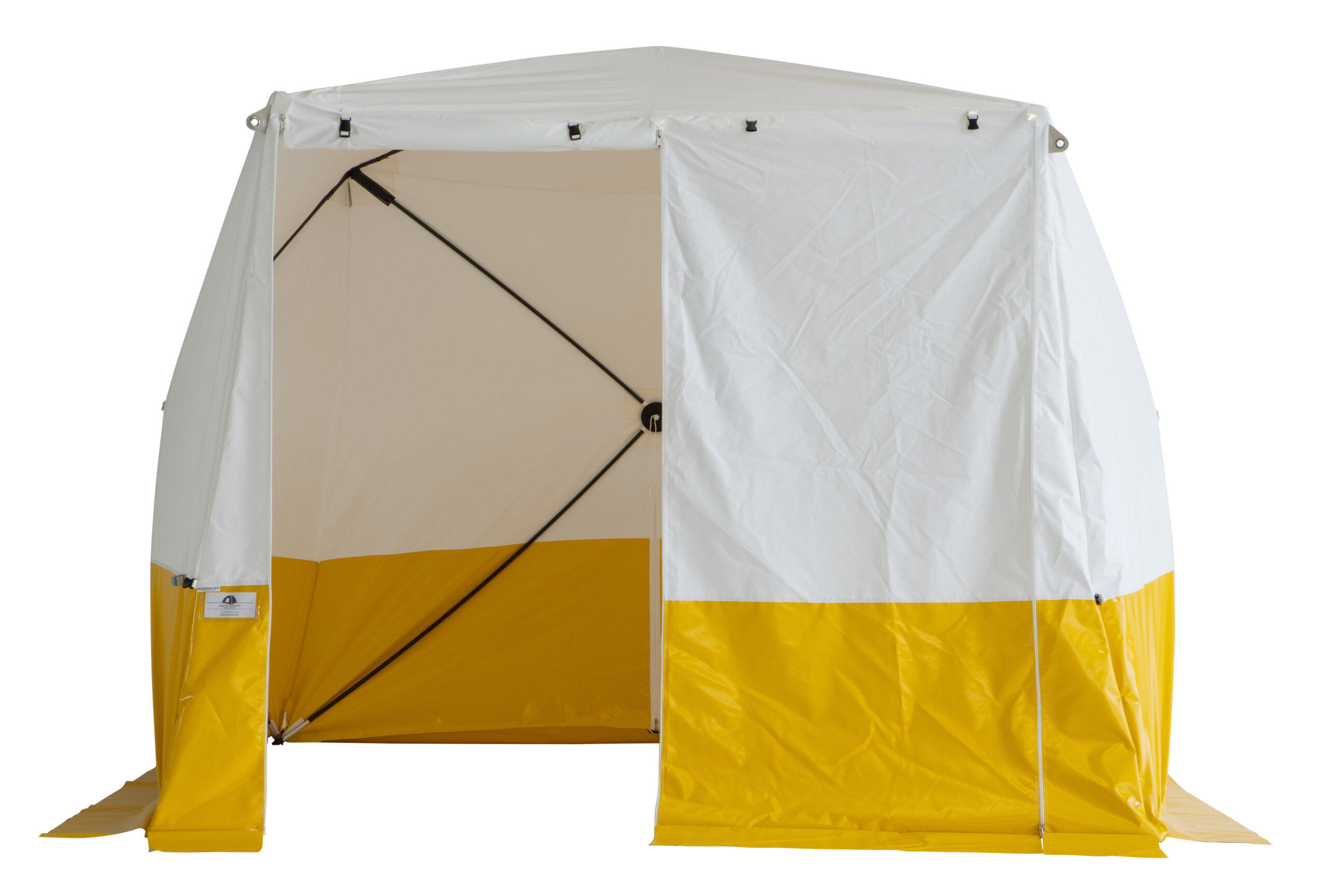 Su principal característica es la rapidez con la que se montan y desmontan. La estructura de tensores ha sido diseñada para poder montar la tienda en menos de un minuto. Los tensores son de alta resistencia y flexibilidad por lo que no tienen problemas de durabilidad. Paredes y techo en textil PVC con protección a la luz e incendios. Son personalizables, se puede incluir el logo o nombre de la organización además de elegir entre diferentes colores o combinaciones de zócalo y paredes.
