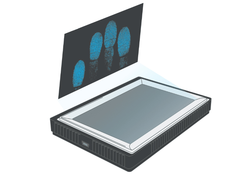 Proporciona la verificación completa de los 10 dedos. No existe ningún otro escáner compatible con AFIS y certificado por el FBI que pueda igualar la versatilidad, el rendimiento y la forma compacta del FIVE-0.