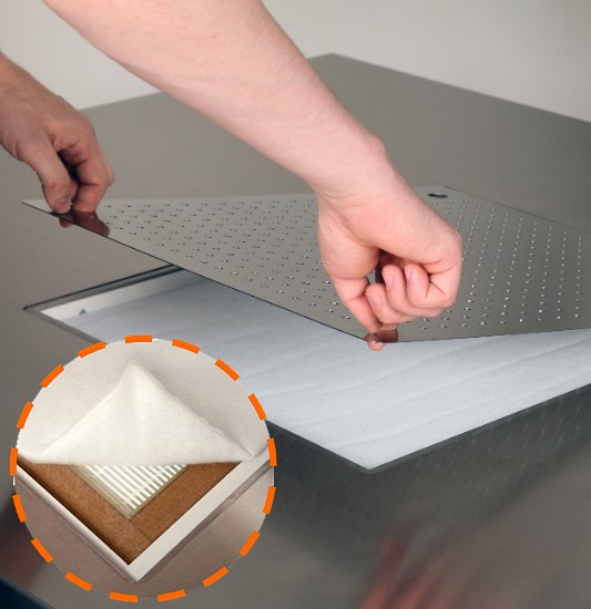 El sistema de filtración de PHOTOVENT está integrado directamente en la propia superficie de trabajo. Los humos y las partículas sueltas, como el polvo y los reveladores de huellas dactilares, se introducen en nuestro sistema de filtrado de varias etapas para reducir el riesgo de inhalación y contaminación sin necesidad de conexiones de ventilación externa ni campanas extractoras.