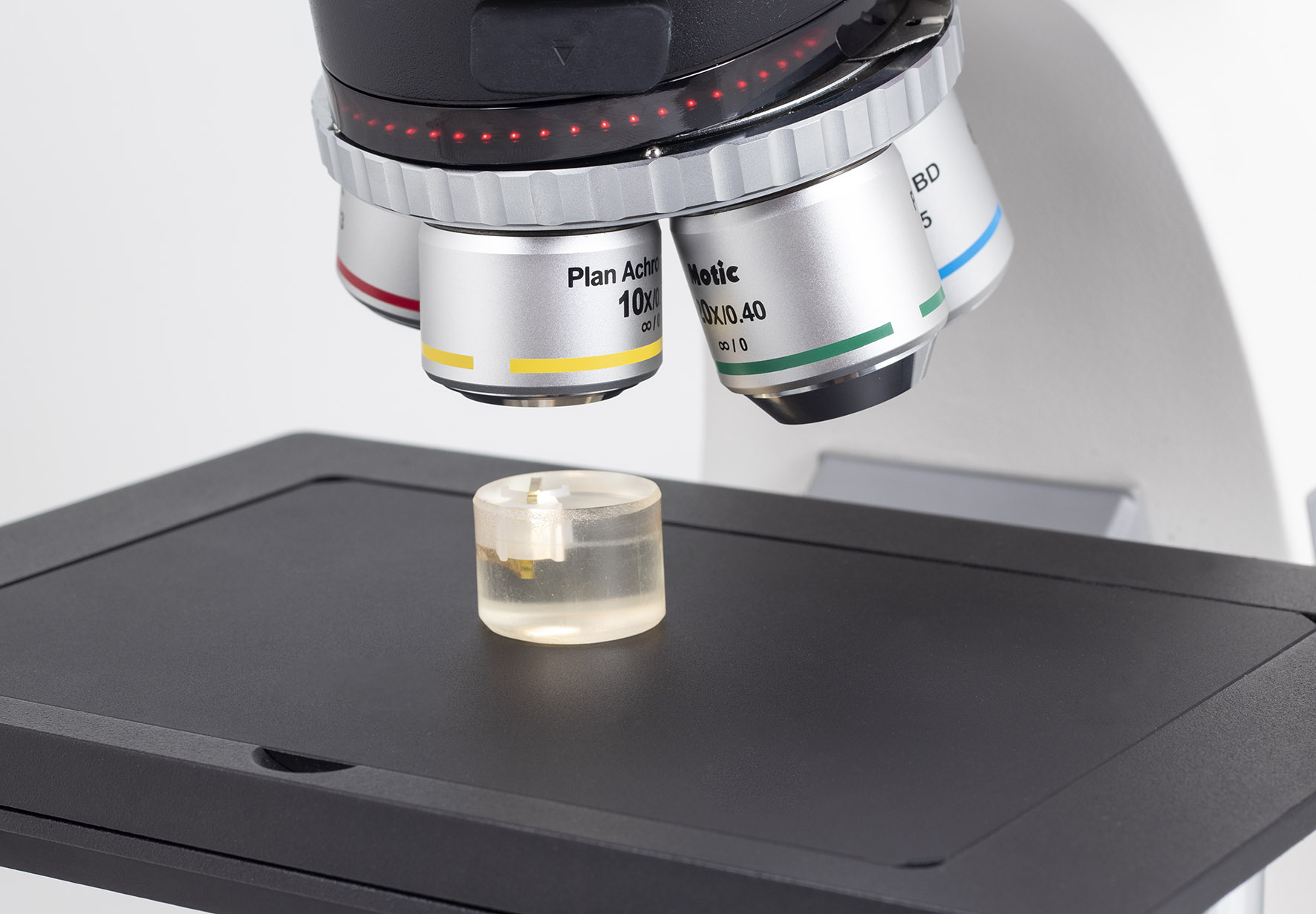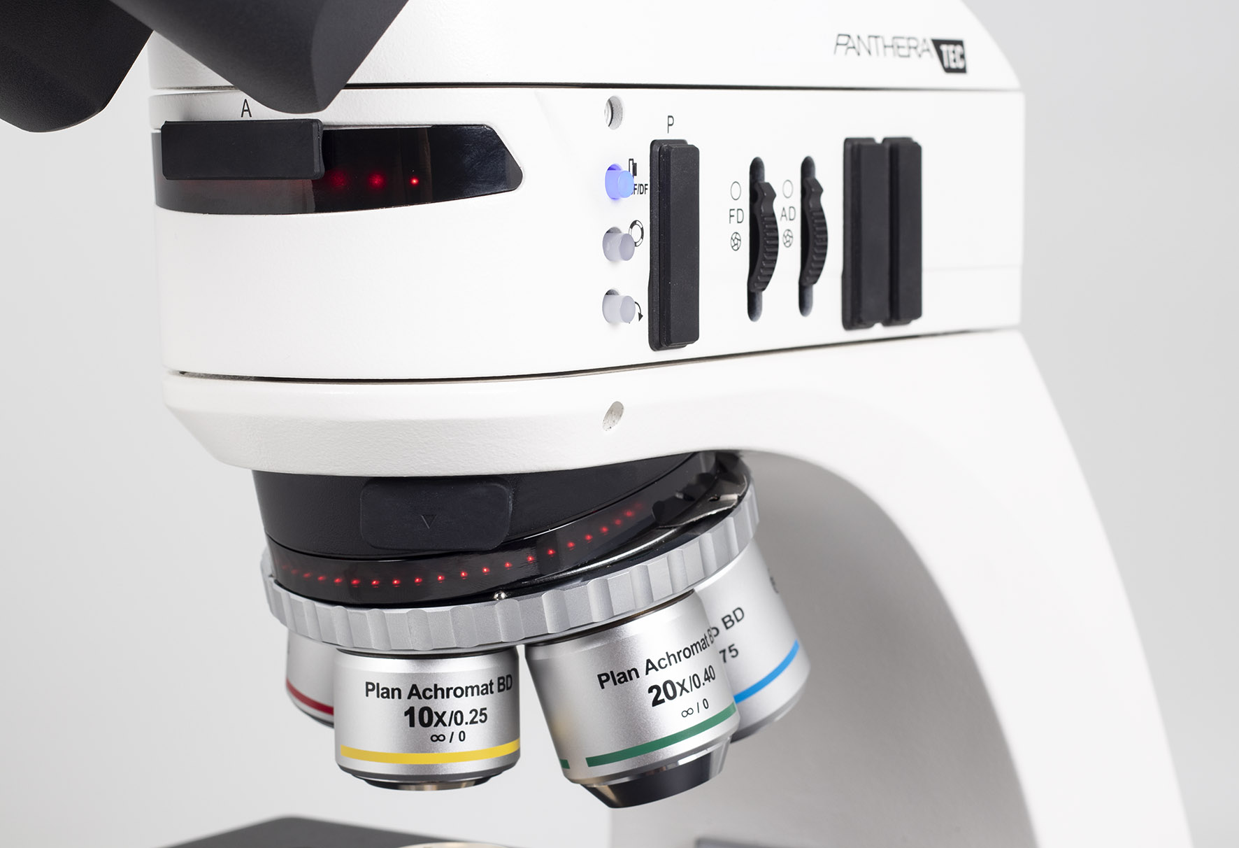Un nuevo nivel de microscopio de luz incidente para las ciencias de los materiales. Panthera TEC MAT BD es un microscopio trinocular con un conjunto de objetivos acromáticos y semiapocromáticos BF/DF Plan, que funcionan con oculares UC de 22 mm de campo de visión.